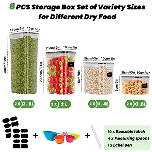 ✅【Juego de 8 Botes Cocina】 Este producto contiene 8 cajas de almacenamiento:2.8L(2 PCS) 2L(2 PCS) 1.4L(2 PCS) 0.8L(2 PCS).Con 16 etiquetas reutilizables para marcar los alimentos almacenados, 1 bolígrafo y 4 cucharas medidoras.