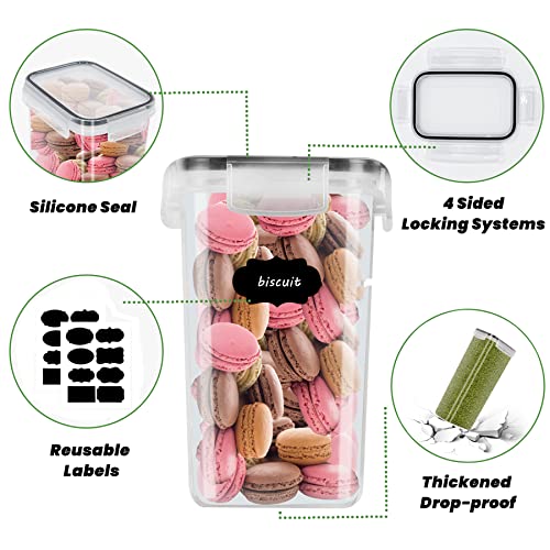 Botes Cocina Almacenaje 8 Piezas, Recipientes para alimentos de Plástico de Alimentos Sellados con Tapa, Se Utiliza para Almacenar Cereales, Pasta, Arroz, Harina (2.8L+2L+1.4L+0.8L)