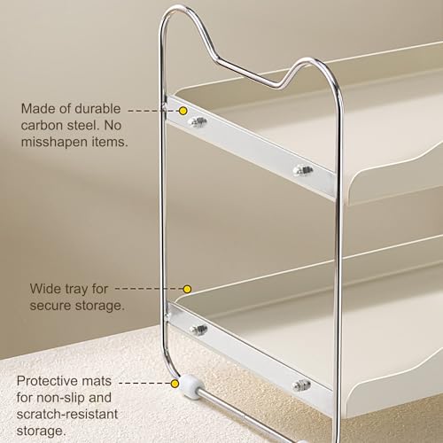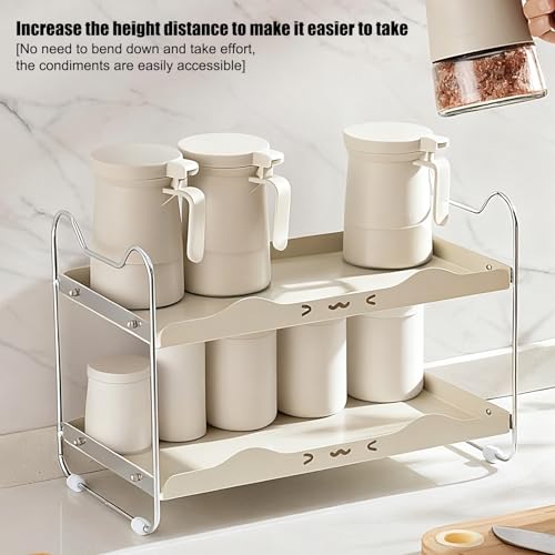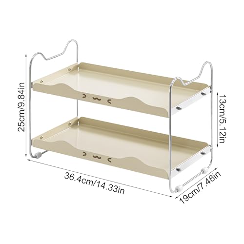 Kitchen Counter Shelf, Non Slip Organizer, Double Layer Storage, 14.33 Inches Multi-Purpose Home Rack with Space Saving Design, Kitchen Shelf with Adjustable Feet, Cabinet Organization for Jars Cups
