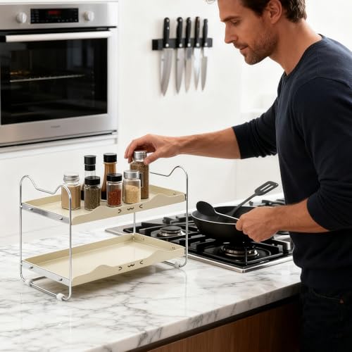 Space-Saving Design: The kitchen counter shelf provides vertical storage for , maximizing space efficiency and delivering a compact kitchen storage solution, ideal for organizing small kitchens while keeping necessary items accessible and clutter-free in limited spaces