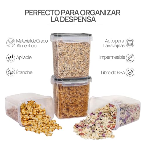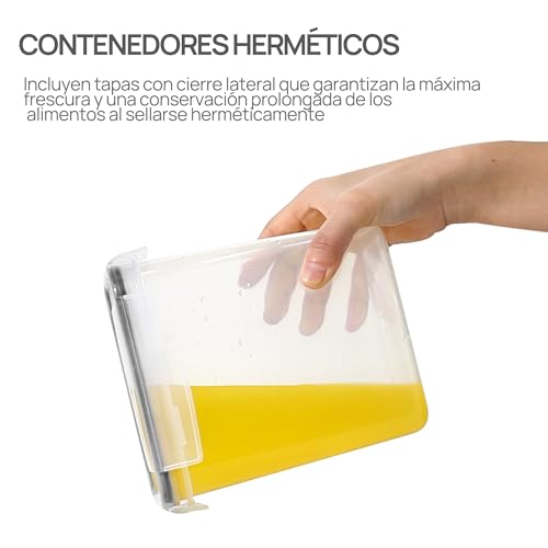Los recipientes herméticos mantienen la comida fresca: las tapas de bloqueo lateral con junta de silicona hacen que estos recipientes de almacenamiento sean herméticos, y la parte superior se abre fácilmente. El sistema de almacenamiento hermético siempre mantendrá tu comida seca y fresca. Todos tienen las mismas tapas que hacen que sea fácil de lavar, secar y reutilizar con facilidad.