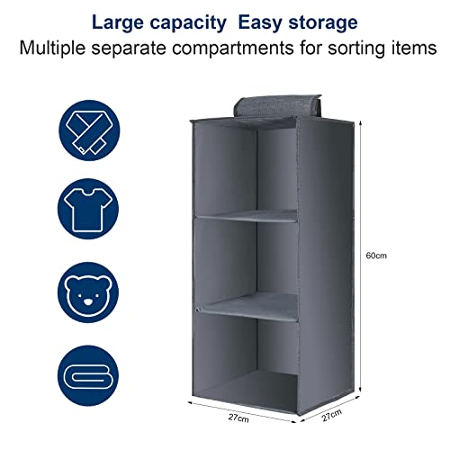 3 COMPARTIMENTOS GRANDES AMPLIOS: El estante colgante tiene 3 compartimentos grandes con unas dimensiones totales de 27 x 27 x 60 cm. Ideal para maximizar el espacio vertical para ahorrar espacio en el armario. Los estantes abiertos con buena visibilidad facilitan la organización de sus diversas prendas. El organizador colgante de gran capacidad brinda suficiente espacio para guardar ropa y accesorios como suéteres, toallas, pijamas y sombreros.
