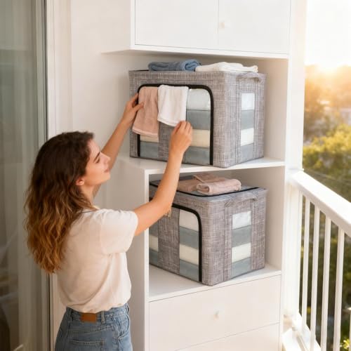 Bulky Items Solution: With a focus on large capacity storage, these clothes storage bins effectively organize bulky items and seasonal garments, delivering a reliable method to keep living spaces neat and functional while simplifying the process of managing household belongings