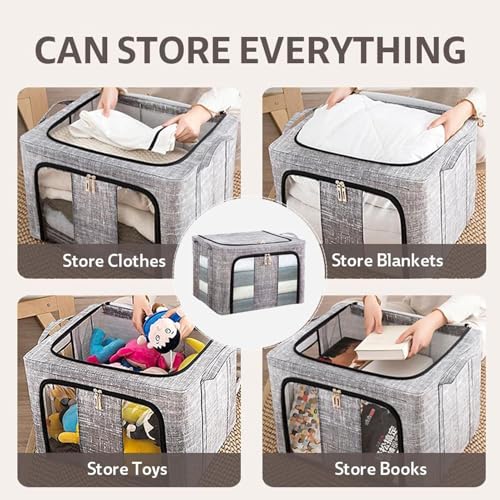 Portable Wardrobe Management: The portable storage box with easy access design allows you to organize clothes efficiently while its reinforced zipper ensures durability, offering convenience during travel or home reorganization