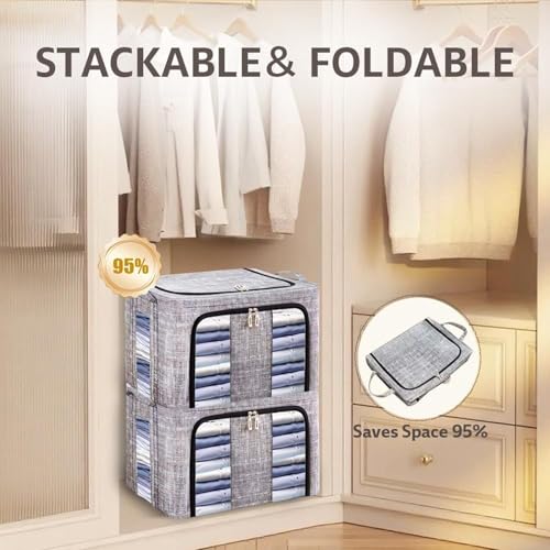 Genérico Clothes Organizer – 66L Waterproof Stackable Bag, Folding Storage Containers for Clothes | Bedroom Home Apartment Closet Fabric Bed Sheets Comforter Toys Garment Organization