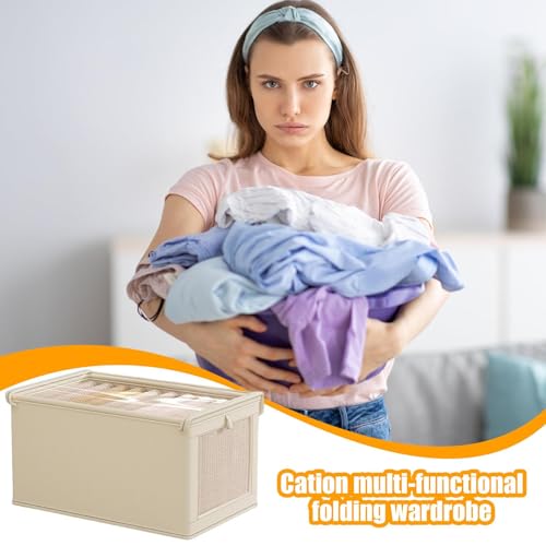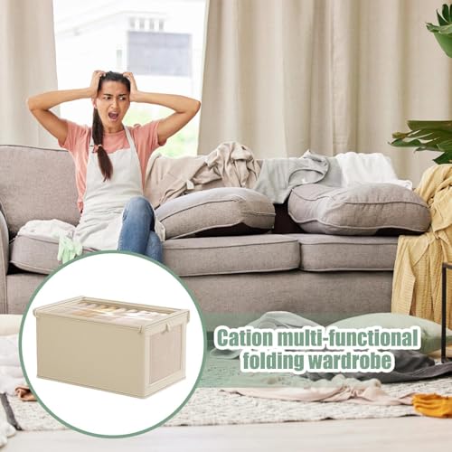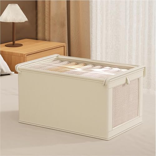 Genérico Clothes Storage Boxes, Fabric Bins with Lid and Handle, Clear Window Stackable Drawer Organizers, Folding Storage Box for Nursery, Bedroom, Home Closet Organization