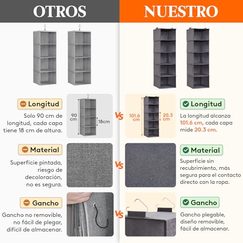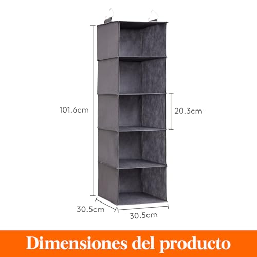 Lifewit Juego de 2 Organizador Armario Colgante con 5 Estantes y 2 Ganchos Fuertes, Estantes de Almacenamiento para Armario, Organizador Plegable, Almacenamiento de Ropa, Gris