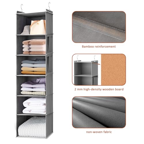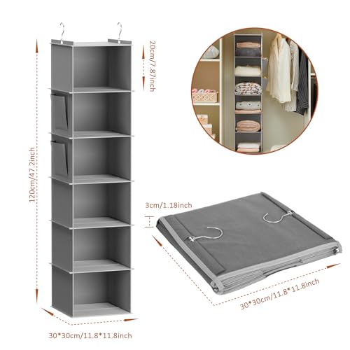Organizador Armario, Organizador Colgante con 6 Celosía, Organizador Armario Ropa de Gancho de Metal para Facilitar el Plegado y el Ahorro de Espacio, Gris
