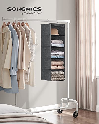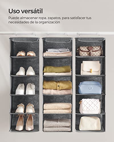 SONGMICS Organizador Armario, Bolsa Colgante de Armario, Plegable, Ahorro de Espacio, con Ganchos Metálicos, Refuerzo de Bambú, Patrón de Lino, Gris RYCH06G