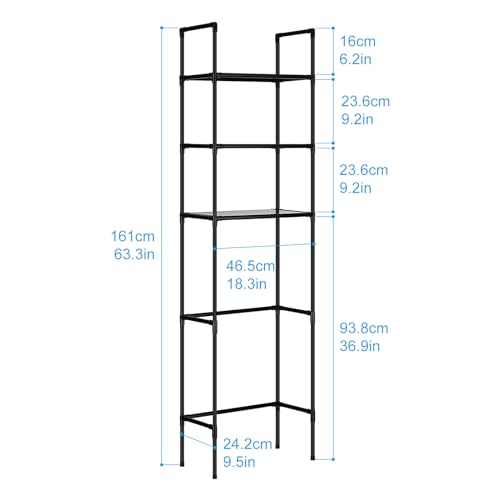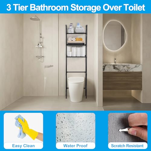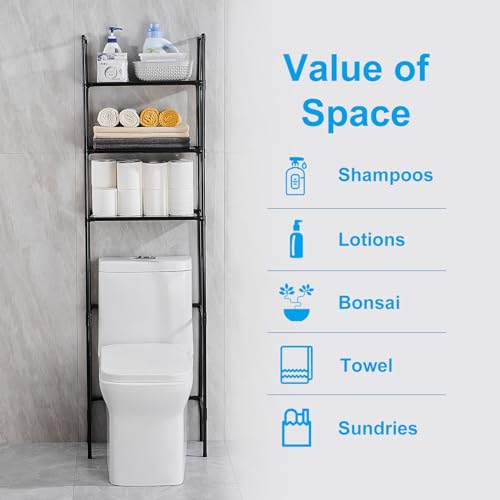 LIUBEI Mueble Baño sobre Inodoro, Estanteria Baño WC 3 Estantes Regulables Mueble Lavadora Ahorra Espacio Estanterias Almacenaje Negro