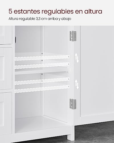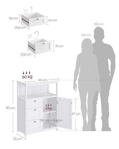 VASAGLE Mueble de Baño, Armario, Unidad de Almacenamiento, con 3 Cajones, Estantes Regulables, 30 x 60 x 80 cm, Blanco BBC542P31V1