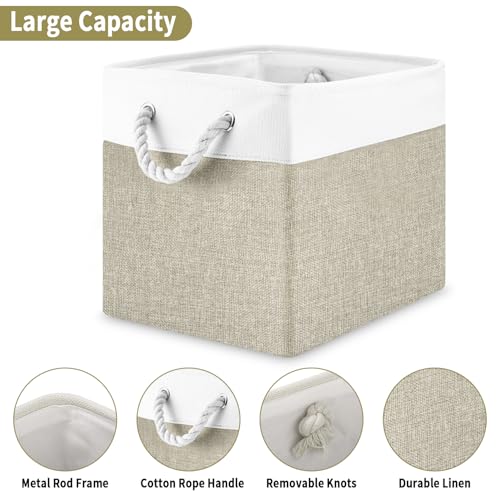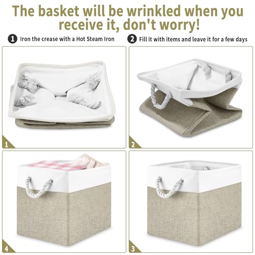 CESTA DE ORGANIZACIÓN DE ALMACENAMIENTO: Esta cesta de almacenamiento plegable en forma de cubo está hecha de lino de alta calidad y tela no tejida duradera, transpirable y no irritante. Lavable y reutilizable, durable, hacer su hogar más limpio
