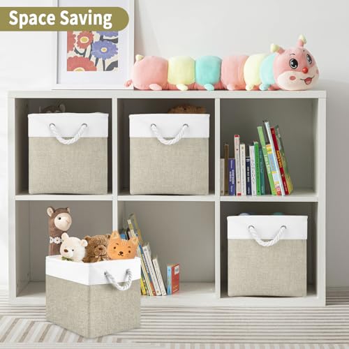 Cestas de Almacenaje Tela, Pack de 4 Plegable Cajas Organizadoras Lavable Plegable Cajas Organizadoras con Asa de Transporte 28x28x28cm Adecuada para Armarios,Librerías,Juguetes,Estanteria
