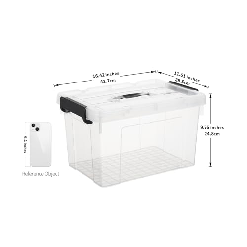 Cetomo 20L*4 Caja de Almacenamiento con Asa, Caja de Plástico con Tapa y Cierre Seguro, Contenedor de Almacenamiento, Duradera, Apilable, Resistentes, Transparente, Paquete de 4 de 20L