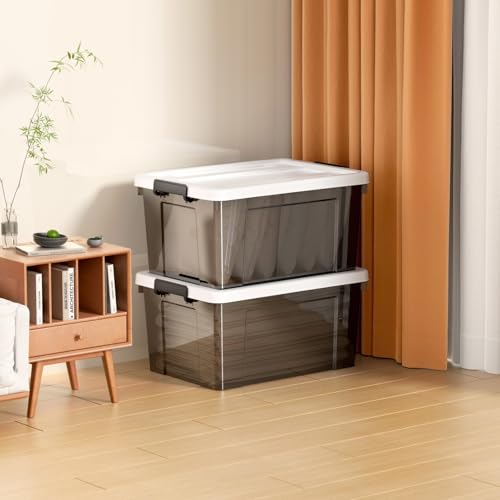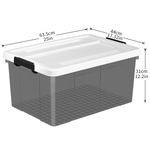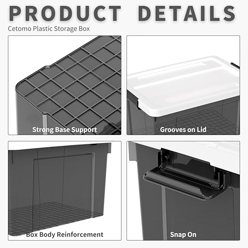 Cetomo 65L*4 Caja de Almacenamiento, Caja de Plástico con Tapa y Cierre Seguro, Contenedor de Almacenamiento Grande, Duradera, Apilable, Resistentes, Negro Transparente, Paquete de 4 de 65L