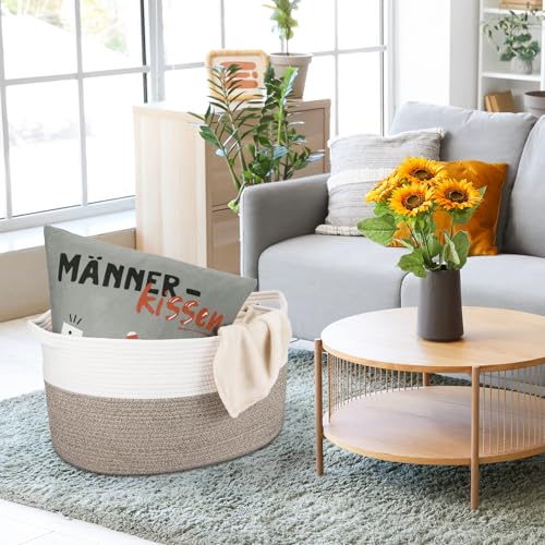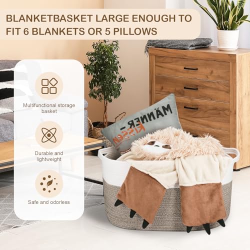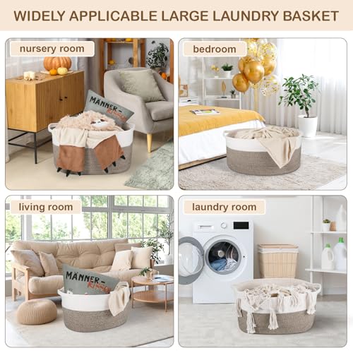【Decoración neutra y elegante para cualquier habitación】 La cesta para mantas salon tejida en blanco y marrón se integra perfectamente con decoraciones boho, modernas o rústicas. Úsala como una elegante cesta para mantas en la sala de estar, un organizador ordenado para la habitación infantil o una cesta de lavandería de cuerda en tu área de lavado; añade calidez y funcionalidad a cada espacio.