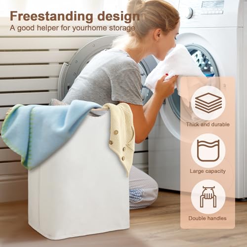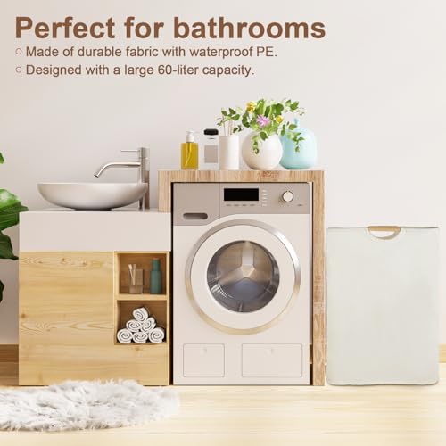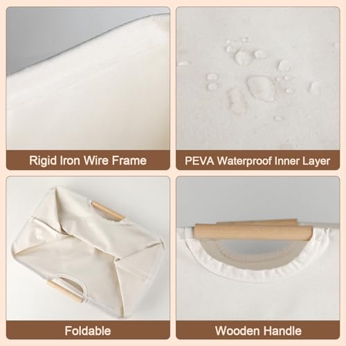 [MATERIAL DE ALTA DURABILIDAD]: El cesto ropa sucia está hecho de un tejido resistente con recubrimiento PE impermeable que mantiene los objetos almacenados secos. (No lavar a máquina para proteger el recubrimiento PE).