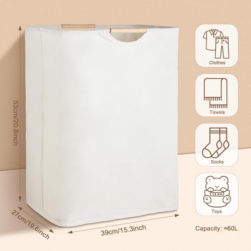 [GRAN CAPACIDAD]: 55x39x27 cm. El cesto ropa sucia estrecho tiene una capacidad de aproximadamente 60L, ideal para ropa de familia o juguetes de niños, brindándole la mejor ayuda organizativa, satisfaciendo las necesidades de cada hogar.