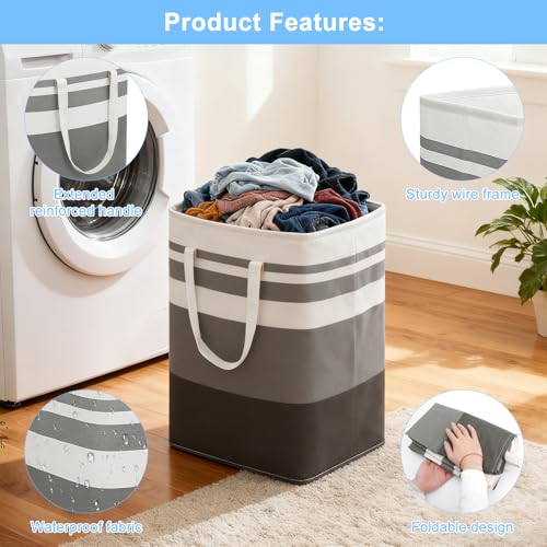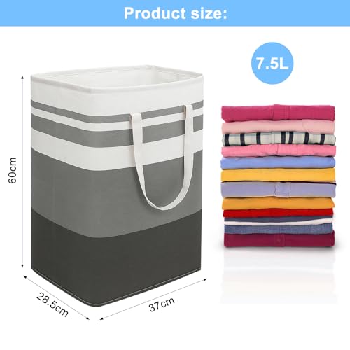 【Uso Versátil en Múltiples Escenarios】El discreto diseño de rayas grises y blancas de esta cesta de ropa plegable aporta un toque moderno. Fácil de plegar y almacenar, ofrece mucho espacio para ropa, juguetes y otros objetos. Esta bolsa de ropa es ideal para el baño, dormitorio o residencias de estudiantes. También es un excelente aliado para acampar o viajar
