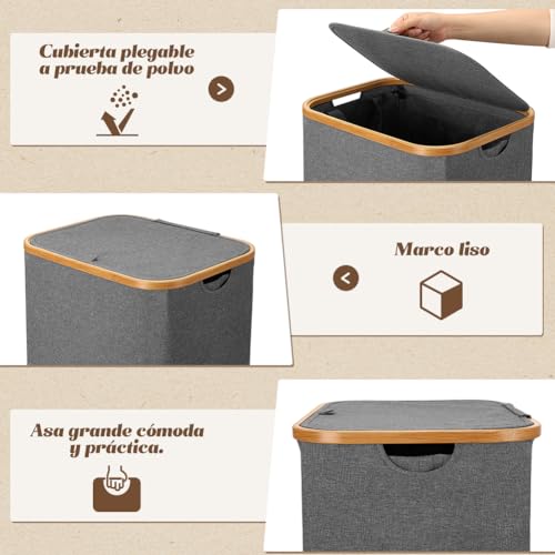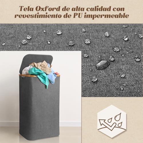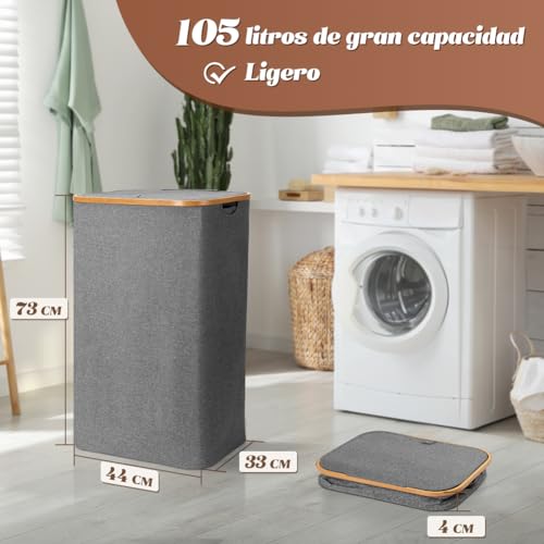 OUSFOT Cesto Ropa Sucia con Tapa Estrecho Laundry Organizer XL 105 L Cubo con Tapa Gris Cesta Fácil de Montar y Plegable con Asas Puede Usar Dormitorios, Salas Estar, Habitaciones Niños, Baños