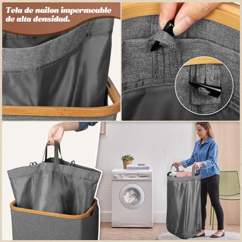 【Bolsa interior desmontable】: Equipado con una bolsa de malla interior desmontable, puedes sacar la ropa sin mover toda la cesta. La bolsa de malla extraíble se puede lavar a máquina y la bolsa de malla portátil permite un fácil transporte a la lavadora.