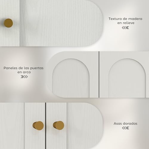 UN TOQUE ELEGANTE Y ACTUAL: El acabado blanco texturizado con tiradores dorados y puertas con arco aportan un estilo elegante que combina con cualquier decoración moderna