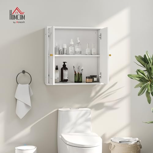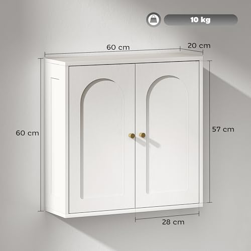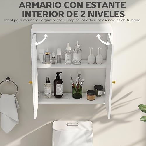 HOMCOM Armario de Baño de Pared Mueble de Baño Colgar con Estantes 2 Puertas con Diseño de Arco Tiradores Dorados 60x20x60 cm Blanco