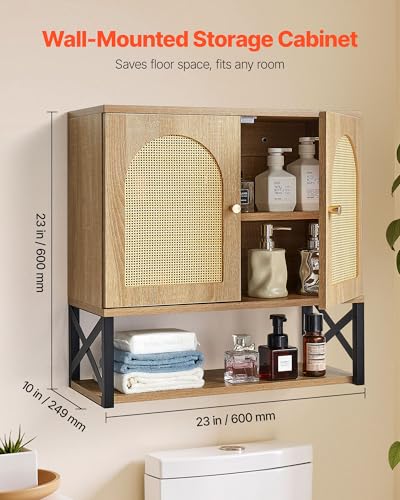 VEVOR Armario de Pared para Baño, Botiquín con 2 Puertas y Estantes Ajustables de 3 Niveles de Altura, con División Abierta, para Cocina, Baño, Lavadero, Aglomerado + MDF, 600 x 249 x 600 mm