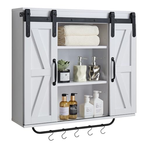 VEVOR Armario de Pared para Baño con 2 Puertas Correderas y Estantes Ajustables, Armario Colgante con Divisor Abierto, Toallero y Ganchos en Forma de S para Cocina e Inodoro, 780 x 220 x 775 mm