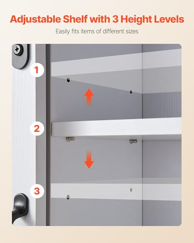 Estante ajustable: El armario de pared cuenta con un estante ajustable con 3 niveles de altura, lo que permite ajustar libremente la altura de los artículos. Su diseño flexible se adapta a diferentes necesidades de almacenamiento y optimiza el espacio del baño