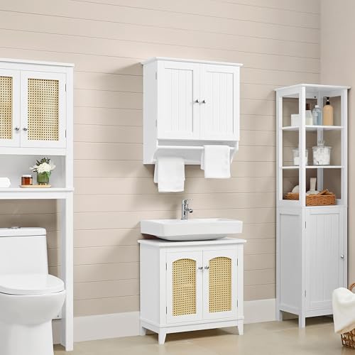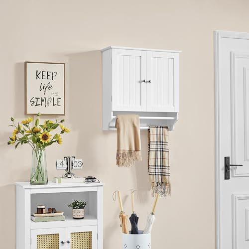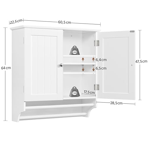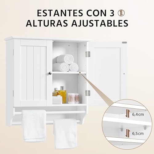 Yaheetech Armario Baño Pared Armario Cocina Colgante con Toallero 60,5×22,5×64 cm Mueble Baño Suspendido de Madera Blanco