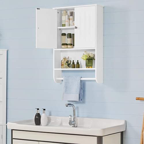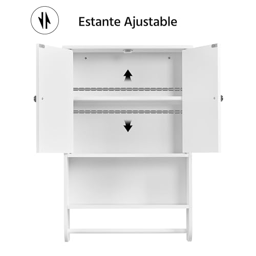 Yaheetech Armario Baño Pared Mueble Baño Colgar con Toallero Armario Colgante de Cocina con 2 Puertas 48,5x14x73cm Blanco Brillo