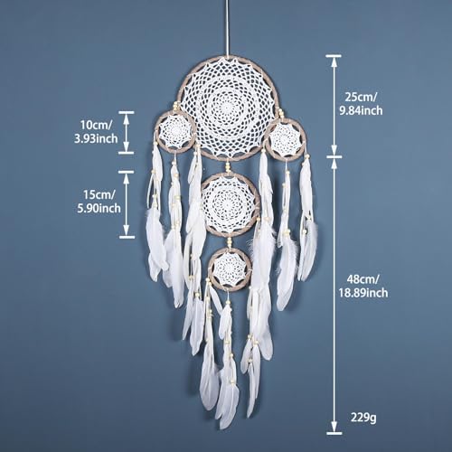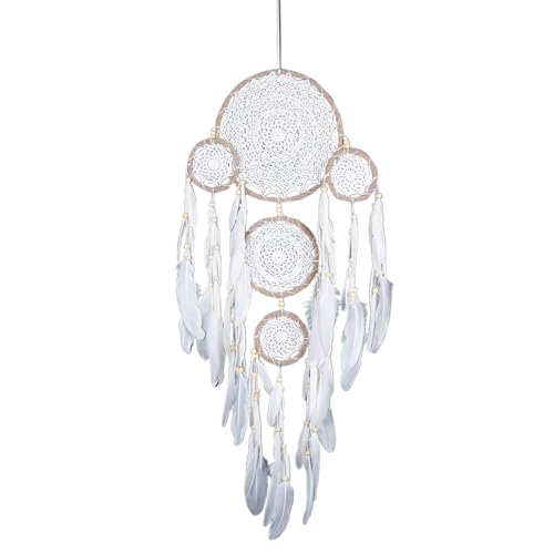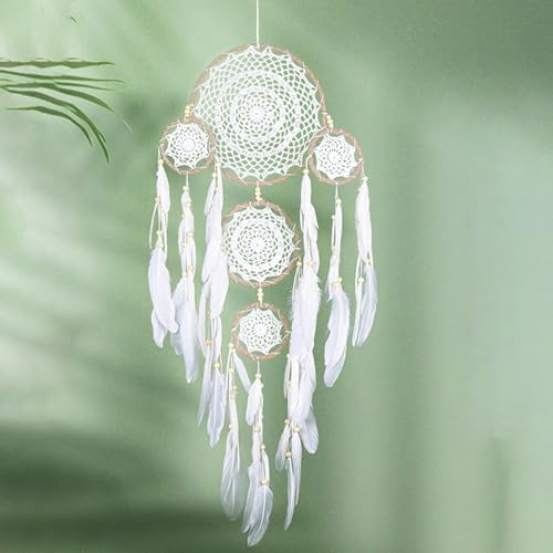 Boho-Inspired Design: Bring a bohemian touch to your home with this five-ring dream catcher, featuring delicate feathers and intricate beadwork that create a beautiful wall hanging perfect for any artistic or creative space