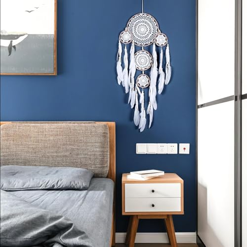 Adorable Dream Catchers, Five Ring Dream Catcher, Wall Hangable Boho Dream Catchers Feather Decoration Kids Bedroom Dreamcatcher for Art Craft, Dream Catcher Wall Decor, Kids Room Decor