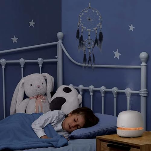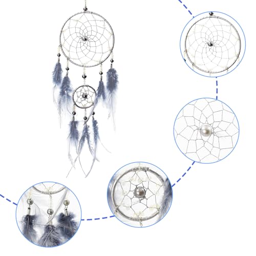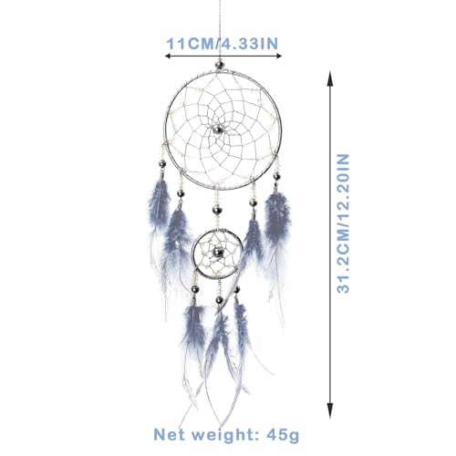 Diseño único: Este atrapasueños utiliza plumas de tono azul grisáceo de ensueño, el diámetro del atrapasueños es de 11 cm/ 4,33 pulgadas con una longitud total de 45 cm/ 17,72 pulgadas (incluyendo la bata colgante), muy ligero y fácil de colgar en cualquier lugar, haciendo su hogar más estético