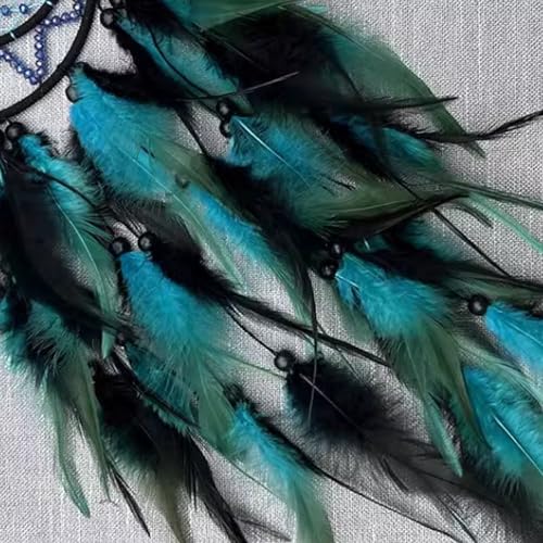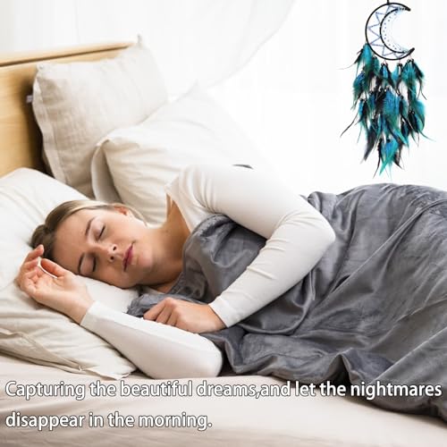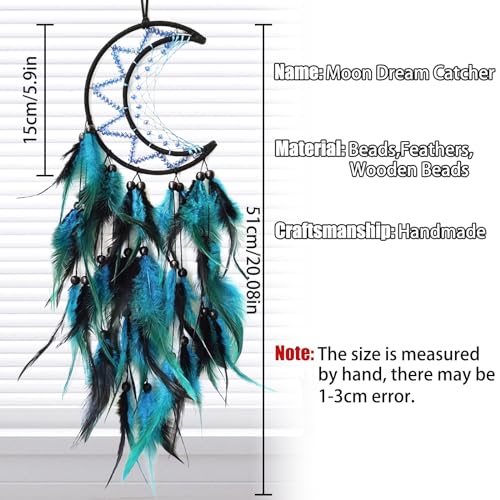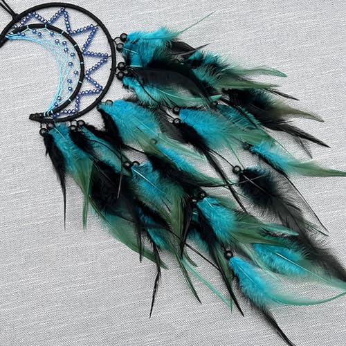 Atrapasueños de Luna para Colgar en la Pared del Dormitorio,diseño de Plumas Negras y Azules,decoración del hogar,Adornos para Colgar en la Pared del hogar,Regalo para Adultos,niños(Azul y Negro)
