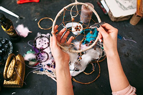 DonDon Atrapasueños Dreamcatcher para sueños Buenos con Perlas y Plumas Naturales Bayo – Ø 14 cm