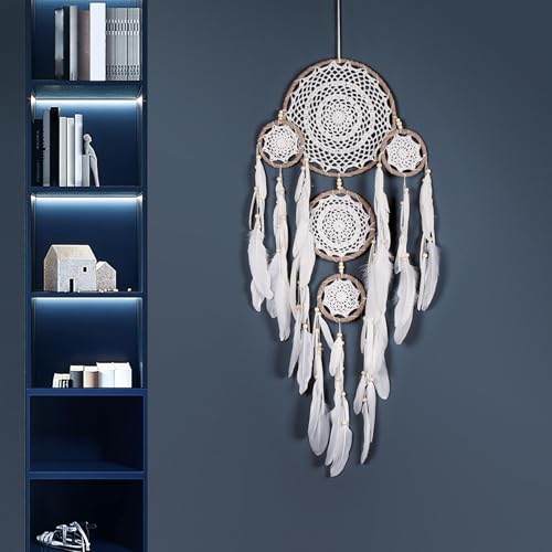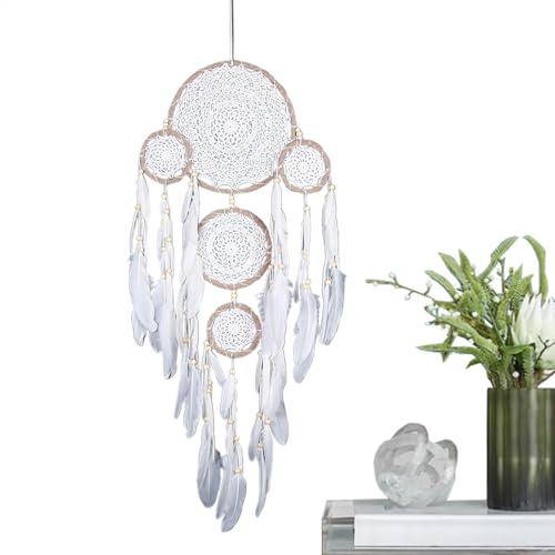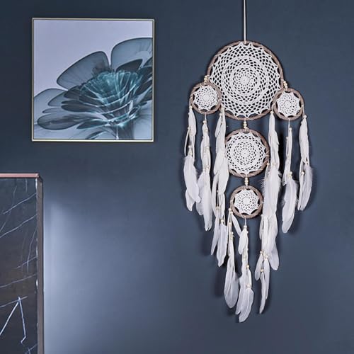 Dream Catchers, Five Ring Dream Catcher, Wall Hangable Boho Dream Catchers Feather Decoration, Kids Bedroom Dreamcatcher for Art Craft, Handmade Dream Catcher Wall Decor for Home, Nursery Room