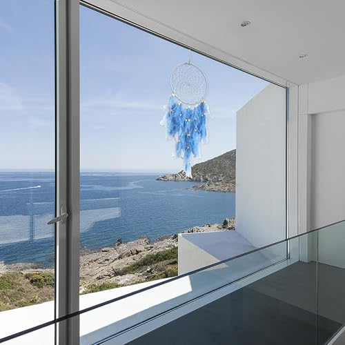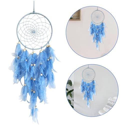 Dreamcatcher, Azul Dream Atrapasueños atrapasueños Hecho a Mano con Plumas para Colgar en la Pared de habitación Infantil para niñas y niños decoración del hogar