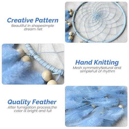 Diseños exquisitos: hemos diseñado cuidadosamente a las niñas atrapasueños con una malla exquisita, decorada con perlas artificiales y colgada con borlas de plumas azules que fluyen para lograr un aspecto más soñador y atractivo.