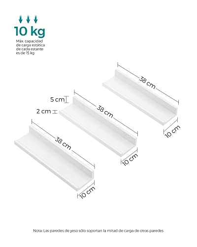 SONGMICS Estantes de Pared, Juego de 3, Estantes Flotantes, Ancho de 38 cm, Estantes Colgantes, para Marcos de Fotos y Adornos, para Salón, Oficina en Casa, Baño, Cocina, Blanco Mate LWS38WT