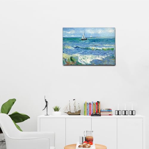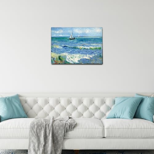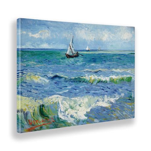Giallobus – Cuadro – Vincent Van Gogh – El mar en Les Saintes Maries – Lienzo con marco estándar – 70L x 50l cm – Listo para colgar – Cuadros modernos para el hogar