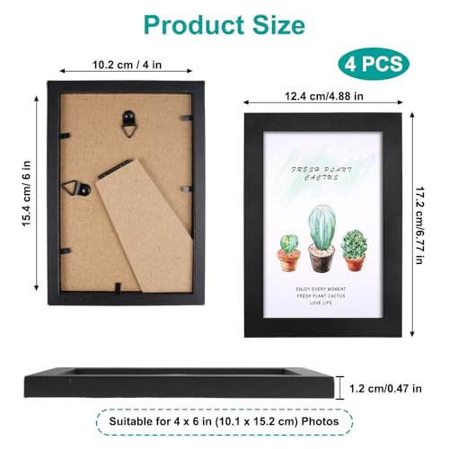 4 Piezas Marcos de Fotos 10×15 cm,Marcos para Cuadros de Madera MDF,Photo Frame con Vidrio Acrílico irrompible,Marco de Fotos,Negros Marcos para Cuadros para Decorar Salones, Pasillos, Dormitorios