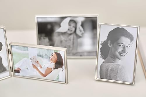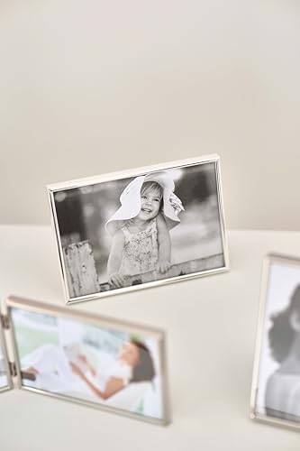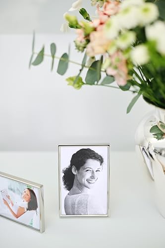 EDZARD Marco de fotos Otto para foto de 10 x 15 cm, plateado, protegido contra el deslustre, pared trasera de terciopelo, con 2 colgadores, portafotos para poner abajo o colgar en la pared