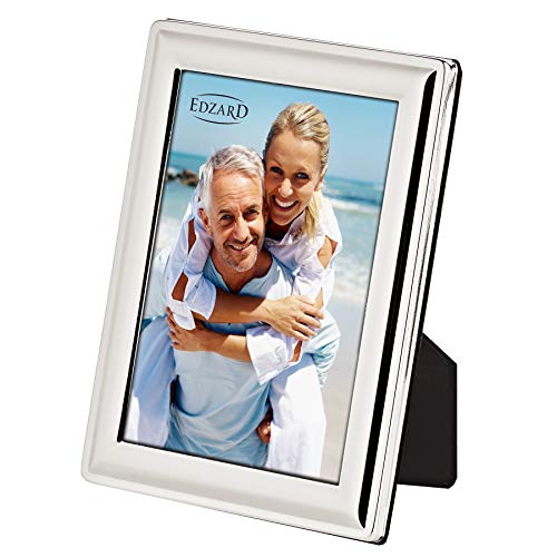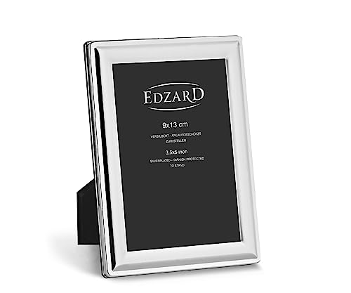 EDZARD Marco de fotos Terni para foto de 9 x 13 cm, plateado, protegido contra el deslustre, pared trasera de terciopelo, portafotos para poner abajo