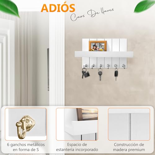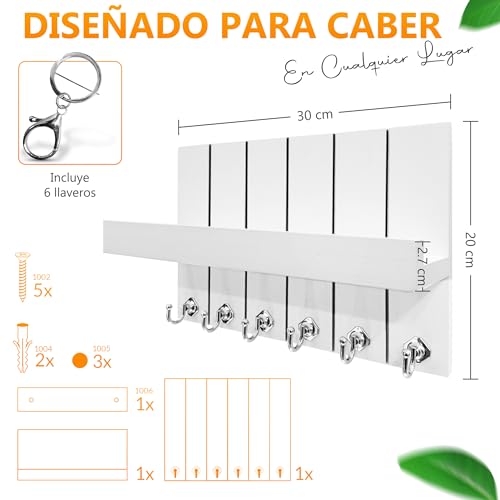 Colgador de Llaves con 6 Ganchos y 6 Llaveros – Cuelga Llaves Grande 30 * 20 * 12 – Porta Llaves Recibidor – Key Holder Wall – Llavero de Pared para la Entrada.