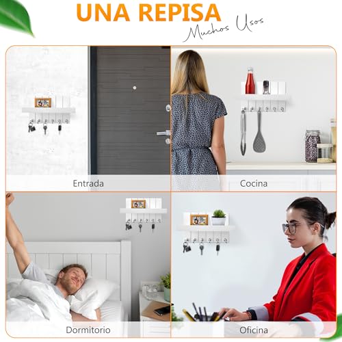 Recibe tu hogar con orden y estilo. Este colgador llaves para pared blanco de 30×20×12 cm es la solución práctica para colgar llaves en la entrada sin buscarlas nunca más. Con 6 ganchos resistentes y 6 llaveros incluidos, tendrás un cuelga llaves para cada miembro de la familia y para cada uso (casa, coche, oficina o trastero). Su diseño limpio combina con cualquier decoración moderna o clásica, convirtiéndose en un portallaves pared decorativo que mantiene la zona despejada. El montaje es rápido y estable sobre pared lisa, ofreciendo un llavero de pared cómodo, visible y siempre a tu alcance. Si buscas un colgador de llaves para pared que sea funcional, duradero y estético, este porta llaves de pared es tu mejor aliado. También conocido como key holder o key holder wall, es perfecto para entradas, recibidores, pasillos y cocinas. Organiza tus llaves, gana tiempo cada mañana y disfruta de un espacio libre de caos con este cuelga llaves pared.