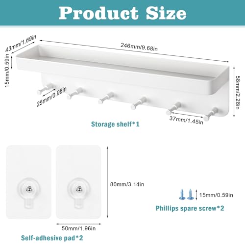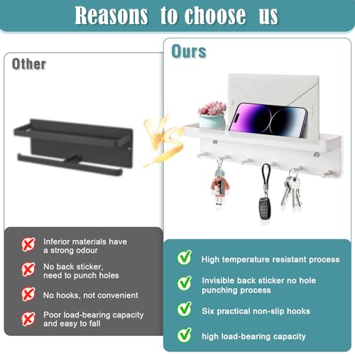 Colgador de Llaves para Pared Cuelga Llaves Pared Percheros Pared con Estante y 6 Ganchos Key Holder Wall Cuelgallaves Casa Llavero Pared para Entrada Salón Cocina Pasillo Oficina (Blanco)