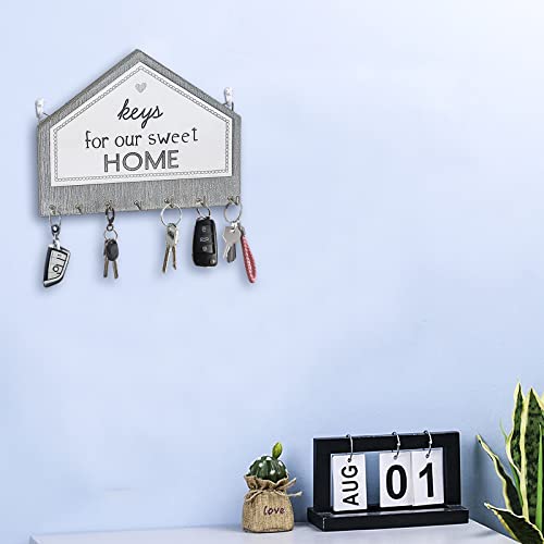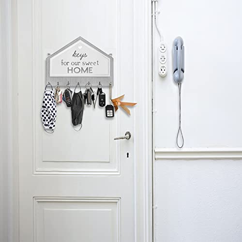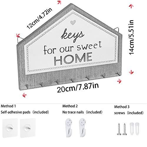 Colgador Llaves Pared de Madera con 7 Ganchos, Autoadhesivo o Perforador Instalación de 3 vías, Porta Llaves para el Hogar (Gris)
