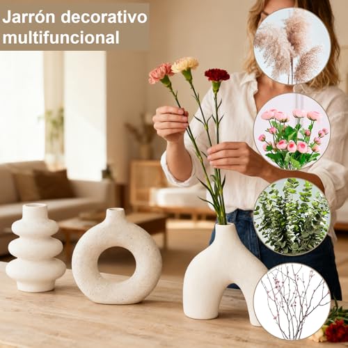Blanco Jarrón de Cerámica Juego de 3,Florero de Flores Secas en Bohemio, para Boho Moderno Nórdico Minimalismo Estilo Decoración -jarrones para Sala de Estar, Boda, Mesa de Cena